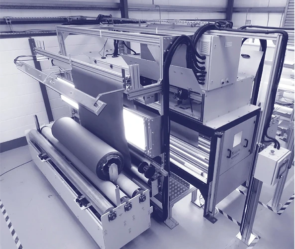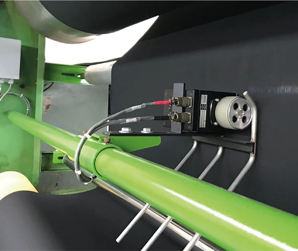 Fornece sensores para medição da densidade do tecido e sistemas de controle. Essa medição permite monitorar cada metro do material, identificando e corrigindo variações no peso tanto entre rolos quanto dentro de um mesmo rolo.